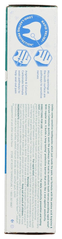 • NATURALLY-DERIVED INGREDIENTS: Our natural toothpaste is free of artificial preservatives, such as colors, aluminum, parabens, and phthalates. To seal the pathways to sensitive tooth nerves and block the pain, this sensitive toothpaste uses a combination of naturally derived ingredients, arginine and calcium carbonate. Also, this natural toothpaste contains a natural flavor/fragrance of fresh mint, so you can have minty-fresh breath all day.